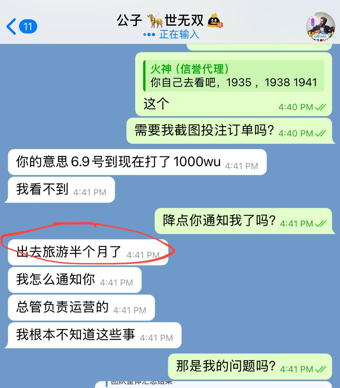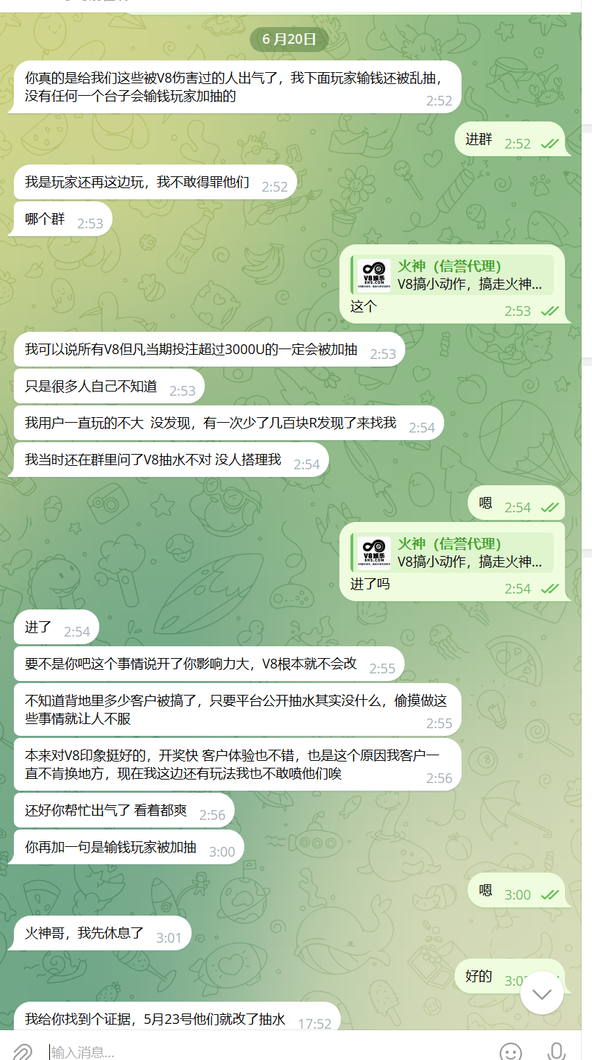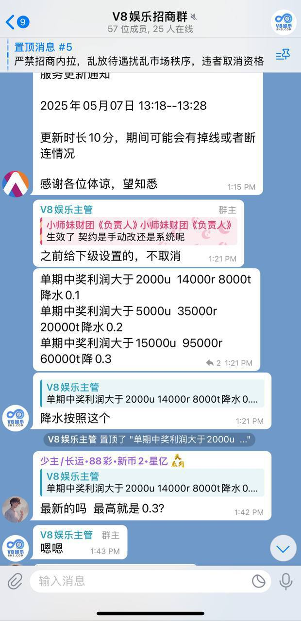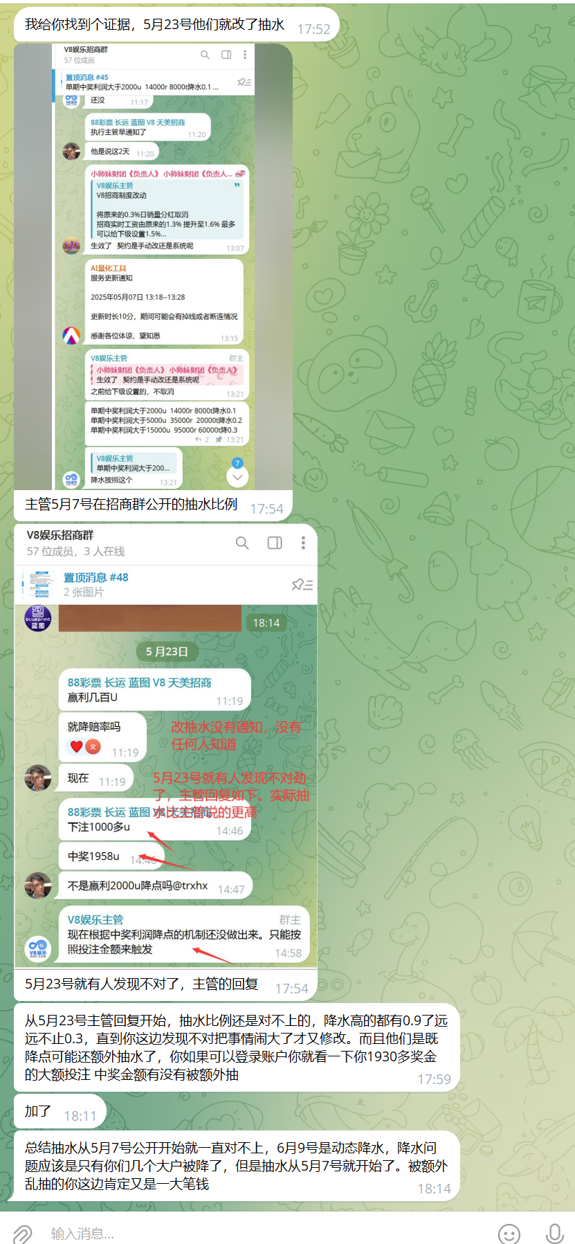 ● 5月份市场主管"公子" TG:@gongzi 告知"微调抽水",当时我没在V8玩,也未起疑在意【见附图】