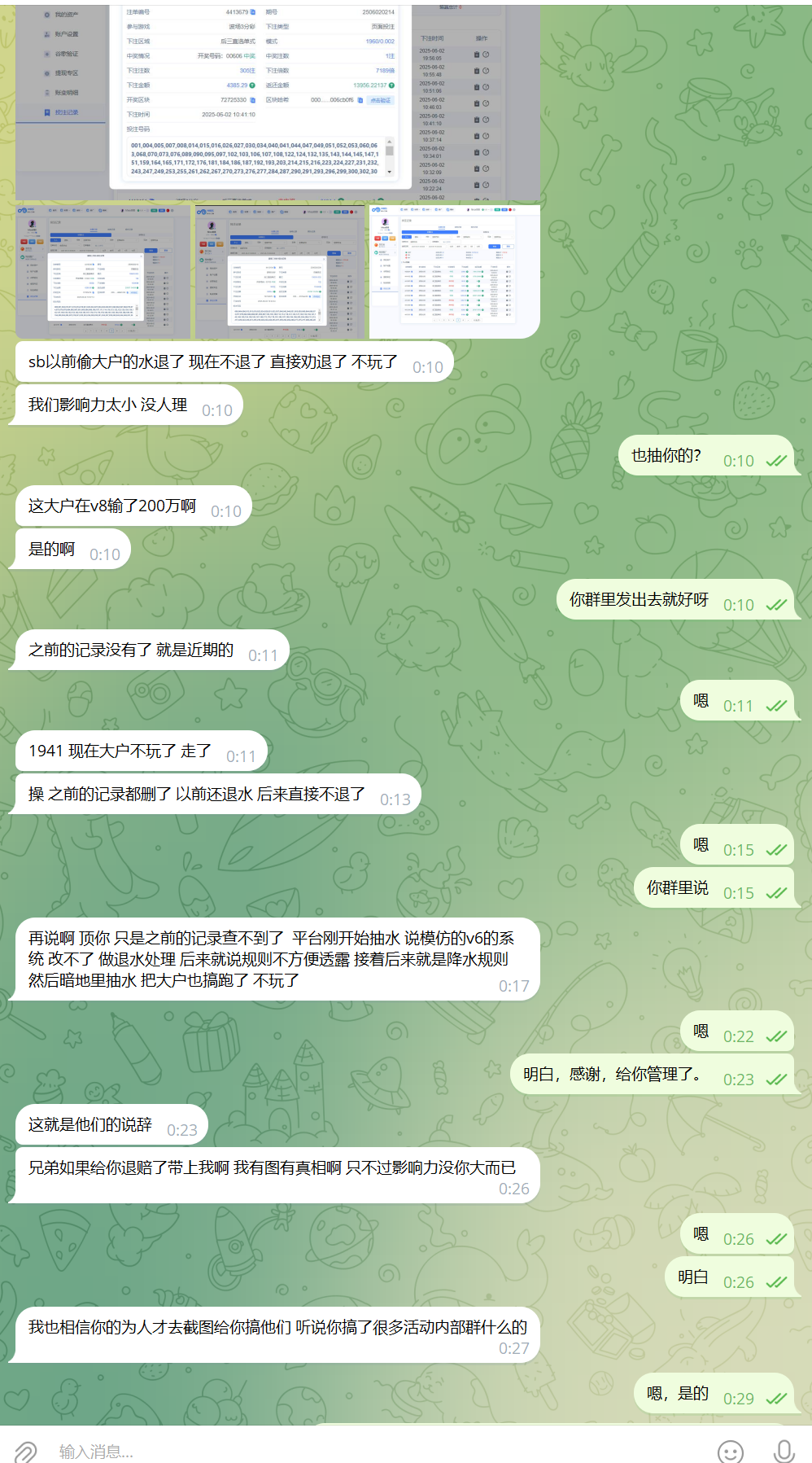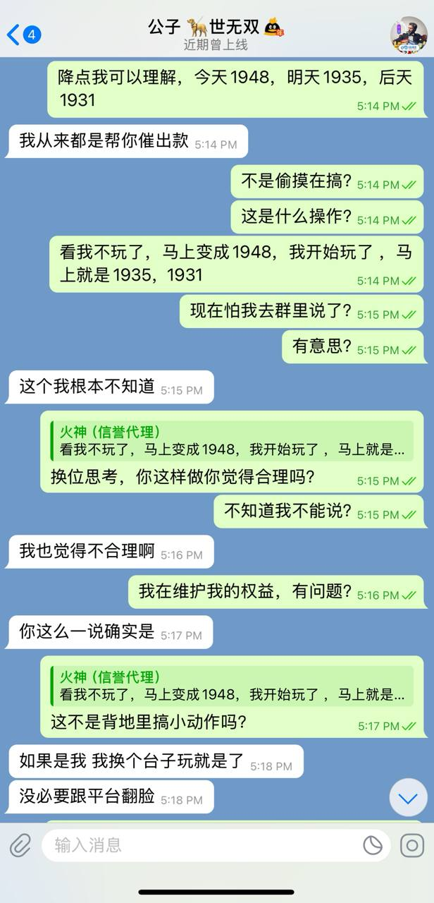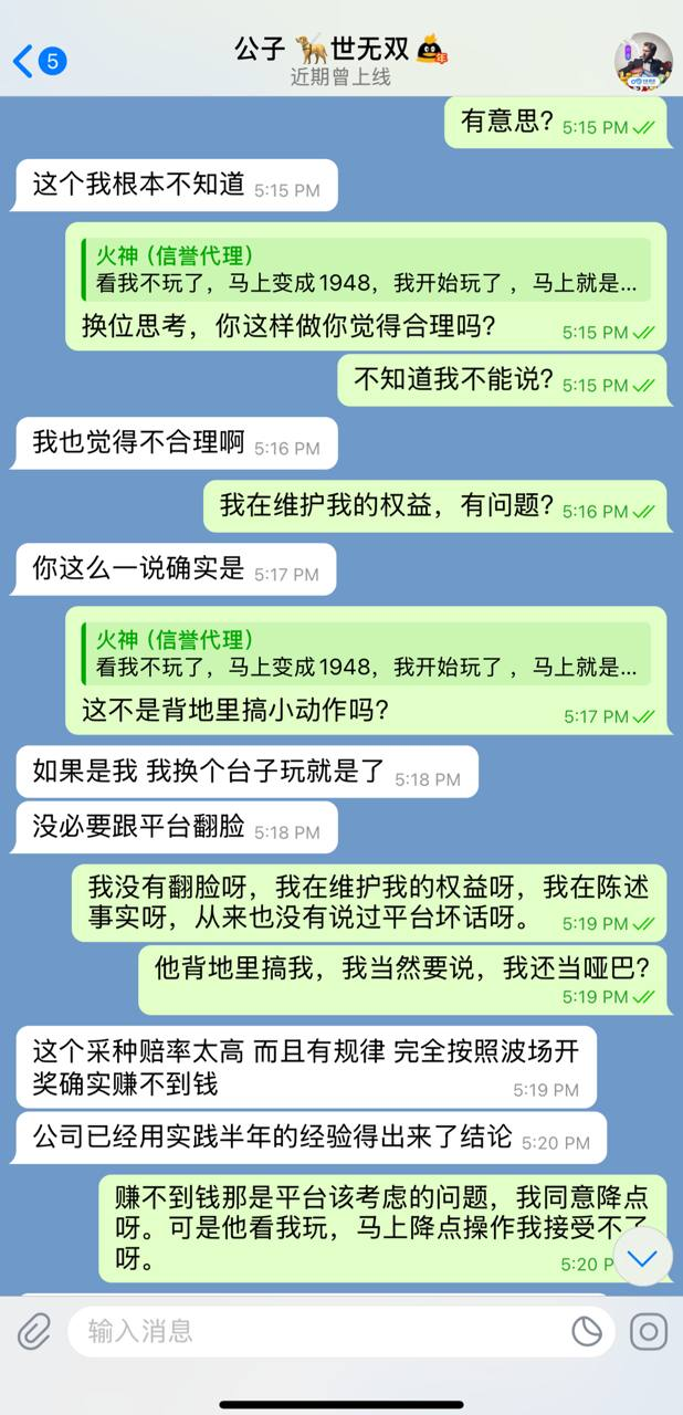 ● 输赢我都可以接受,但是背地里做小动作搞我,我绝对不能接受!况且我是有点销量的代理,平台明目张胆的搞我!